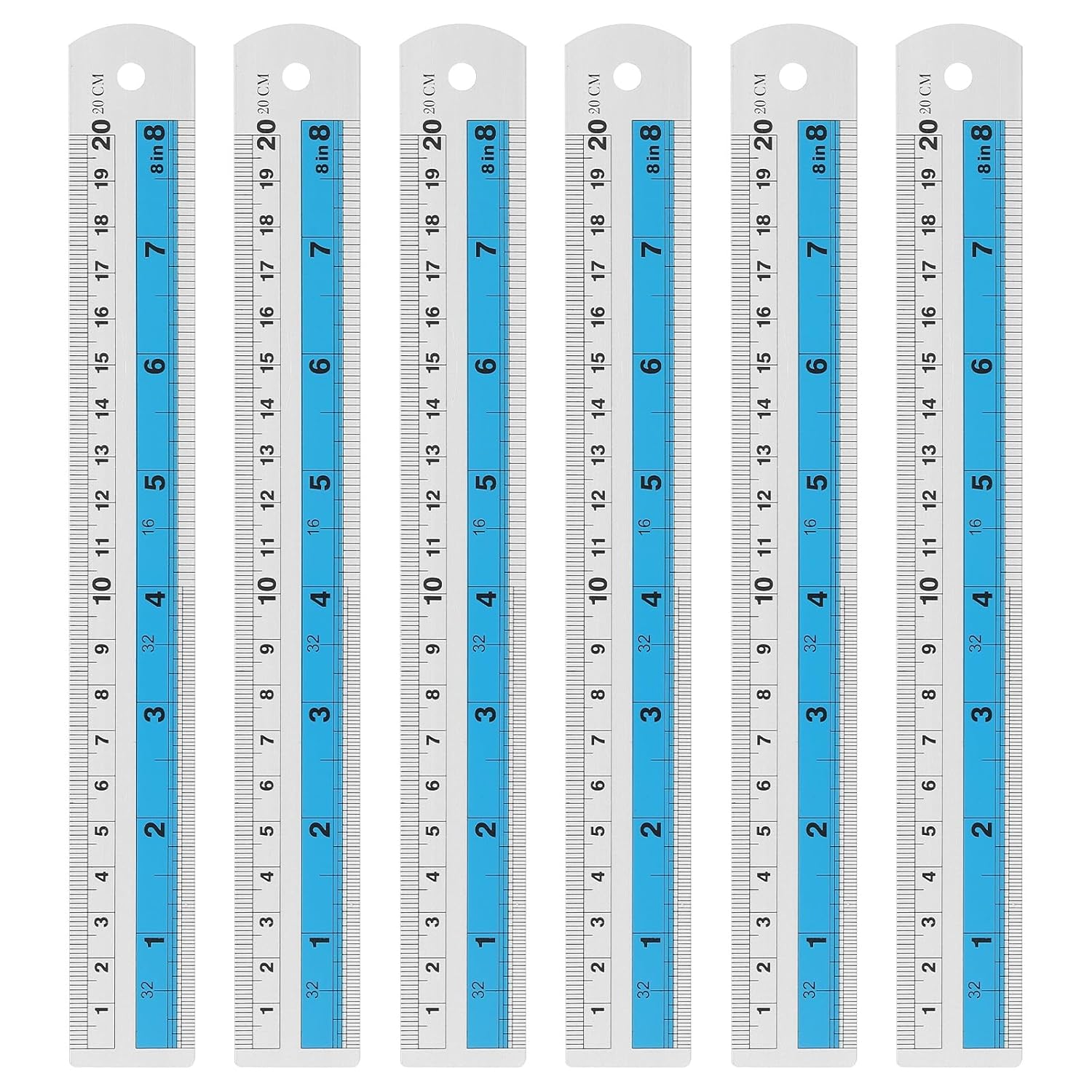 HARFINGTON 6pcs Metal Straight Ruler 20cm Metric SAE Aluminum Alloy Measuring Rulers Scale Tools with Hole for Measure Study Reading Classroom Office, Blue