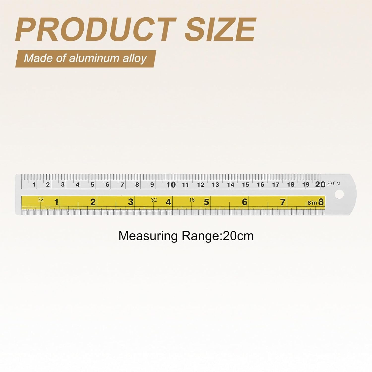 HARFINGTON 6pcs Metal Straight Ruler 20cm Metric SAE Aluminum Alloy Measuring Rulers Scale Tool with Hole for Measure Study Reading Classroom Office, Yellow
