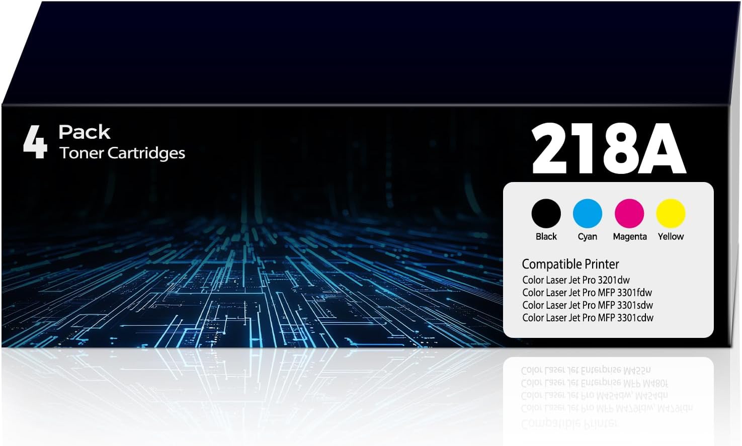 - These 218A Toner Cartridges 4 Pack are compatible with HP 218A 218 218 toner set replacement for HP Color Laser Jet Pro MFP 3301fdw toner cartridges, Color Laser Jet Pro MFP 3301sdw toner cartridges, Color Laser Jet Pro 3201dw toner cartridges, Color Laser Jet Pro MFP 3301cdw toner cartridges