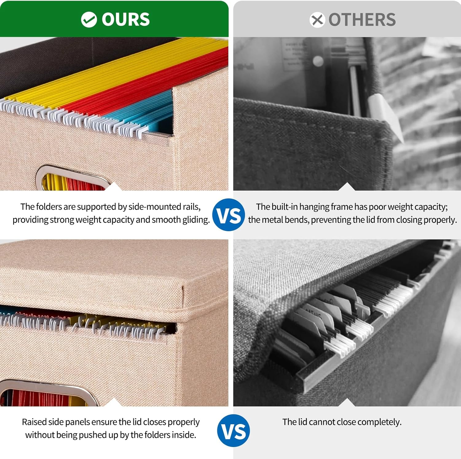 - Exclusive Lid-Friendly Design: Unlike standard file boxes, our unique raised-side design prevents file tabs from bending when the lid is closed. Features smooth PVC rails on front and back for effortless sliding, perfect for hanging file folders without damaging tabs