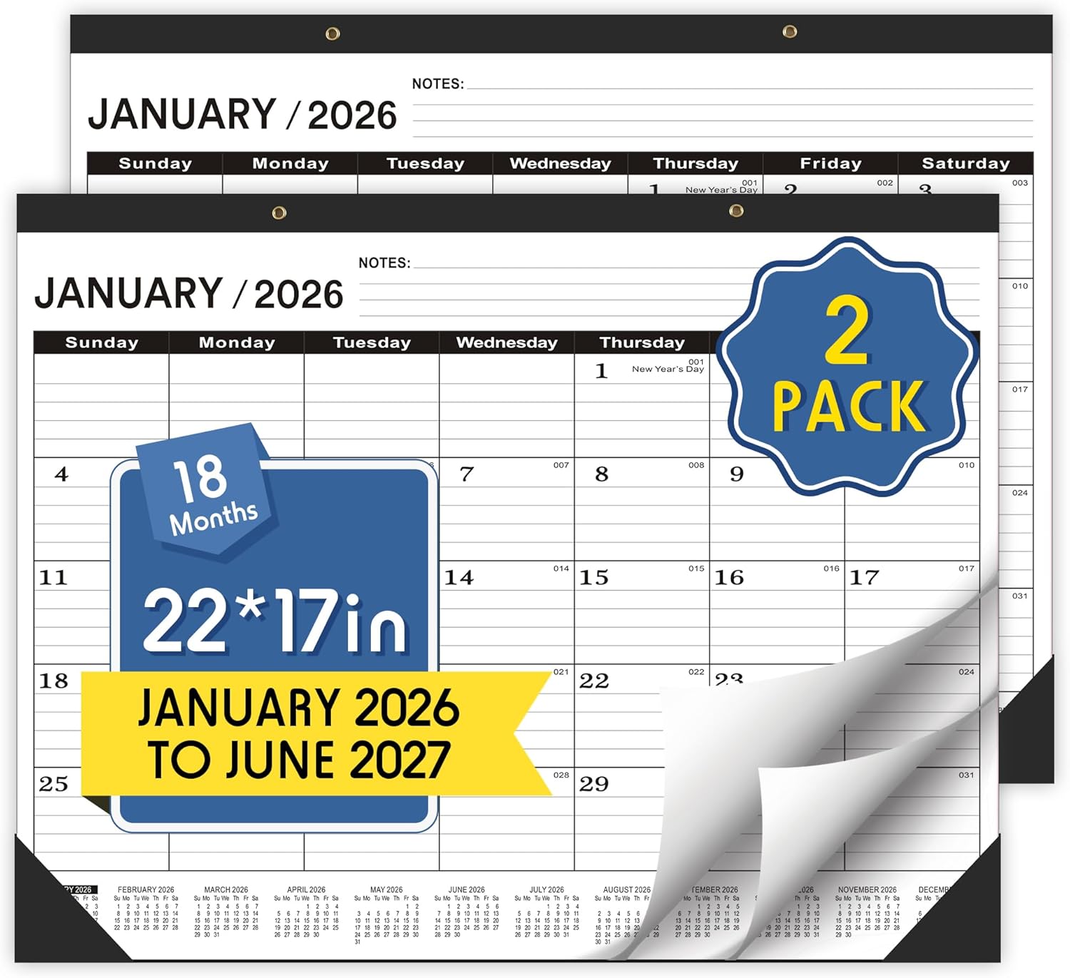 - 🎓CALENDAR--The 2026 calendar 2 PACK allow you to better plan your schedule!Our desk calendar 2026-2027 large 22x17 from January 2026 to June 2027.This desk calendar 2026-2027 includes high-quality paper,providing you with a smooth writing experience!