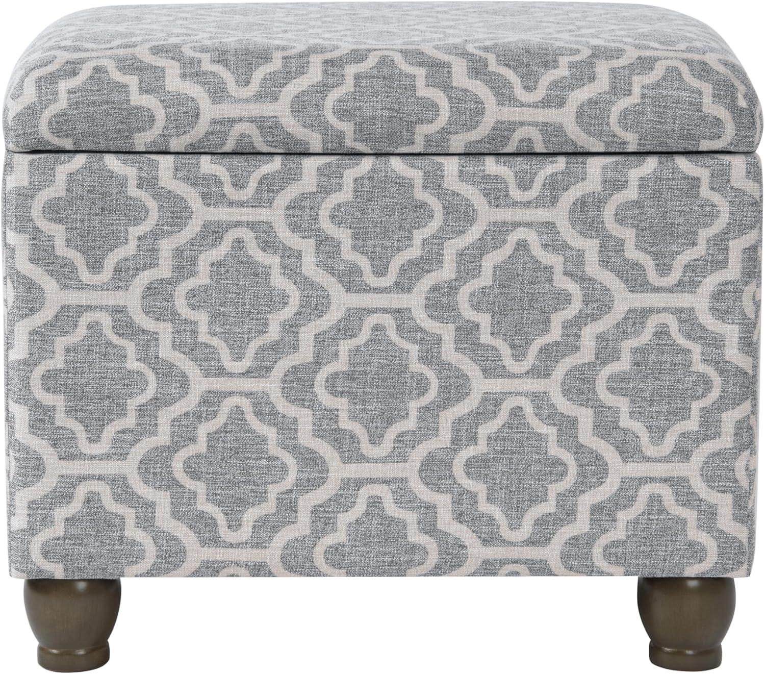 Home Decor | Upholstered MediumRectangular Storage Ottoman | Hinged Lid Ottoman with Storage for Living Room & Bedroom,Gray Geometric