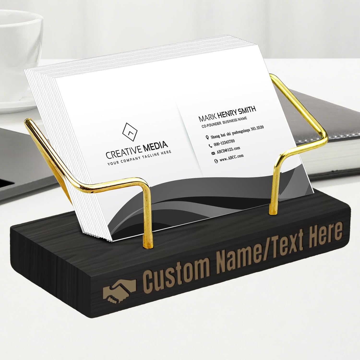 - Materials and Exquisite Craftsmanship:custom desktop business card holder is crafted from quality wood and metal,personalized desk card holder boasts fine laser work.customized business card holder wood is polished for durability,resisting breakage or deformation.