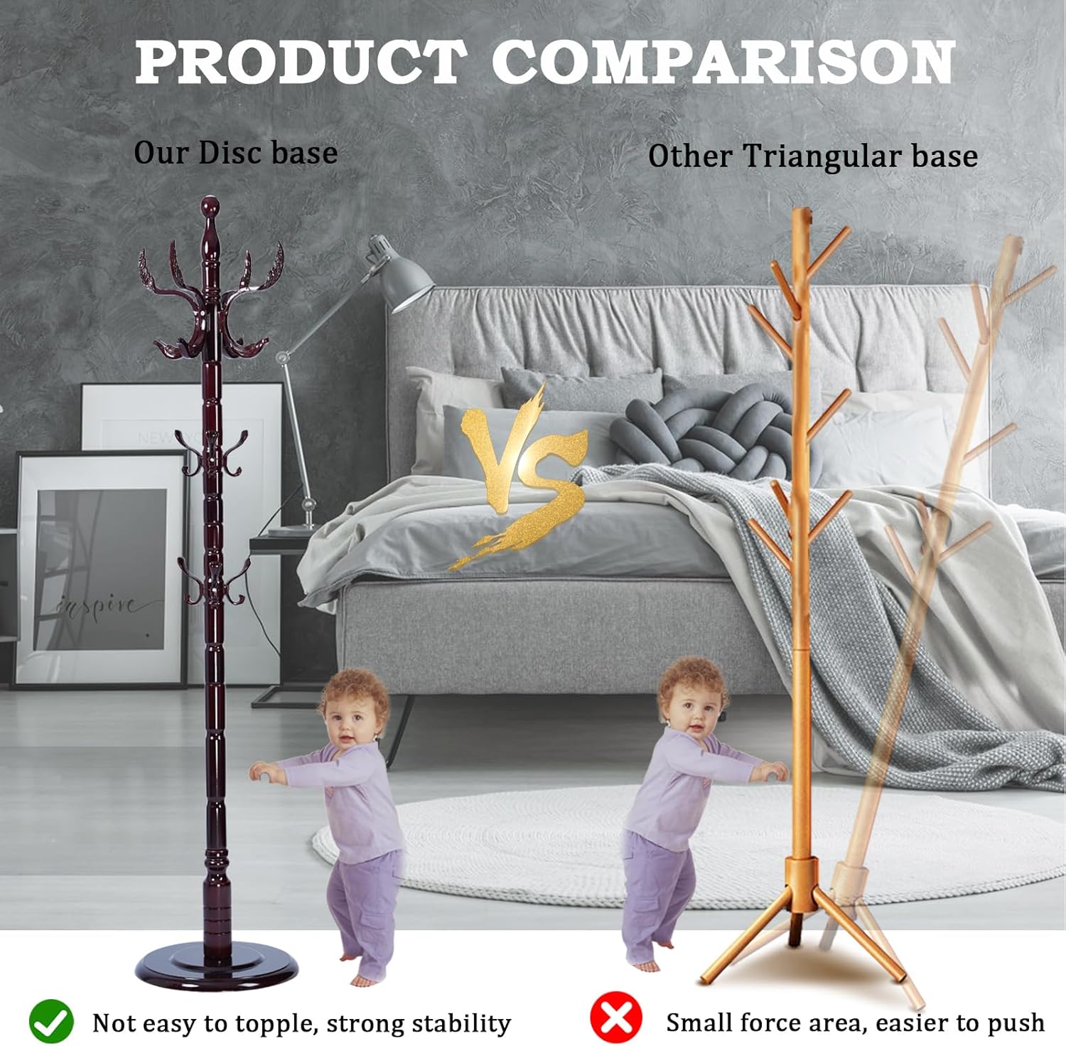 - 【STABILITY & STURDY】The enlarged disc base of this tree Coat Rack Stand and does not shake (base: 14.56 inches;), It is very strong and stable enough to support about 120 pounds of weight, Effectively supporting and hanging multiple heavy clothes, such as jackets, jackets, and cotton clothes, with excellent load-bearing capacity, even if hanging heavy clothes on one side, they will not topple.