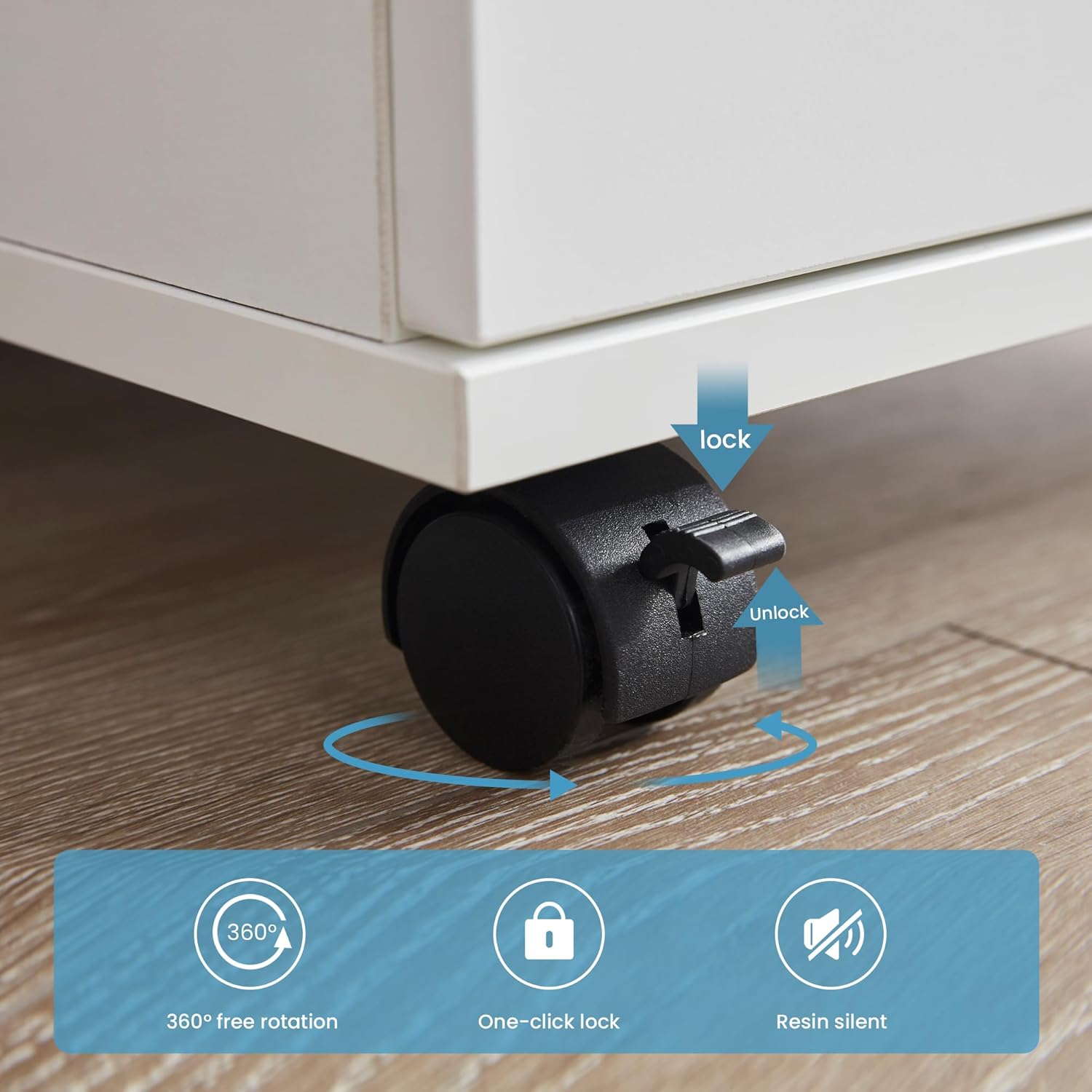 Farini 3-Drawer Under Desk Wooden File Cabinet with Lockable Caster Storage Cabinets for Home Office,White,Required Assembly
