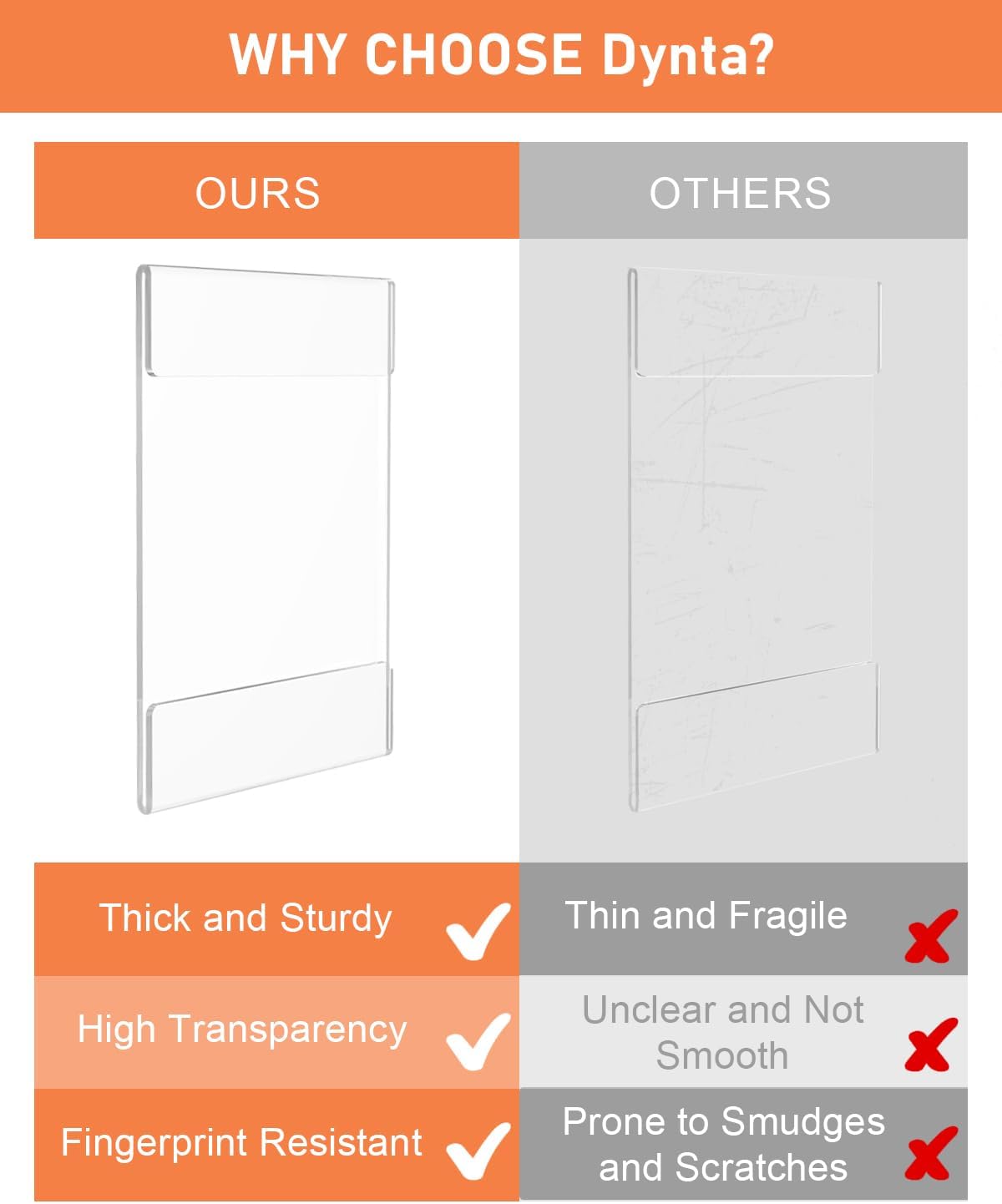 Dynta 6 Pack Acrylic Sign Holder 8.5 x 11 with Double Sided Adhesive Tape, Plastic Sign Holder Wall Mount, Memo Document Flyer Brochure Menu Holder for Office Home Store Restaurant