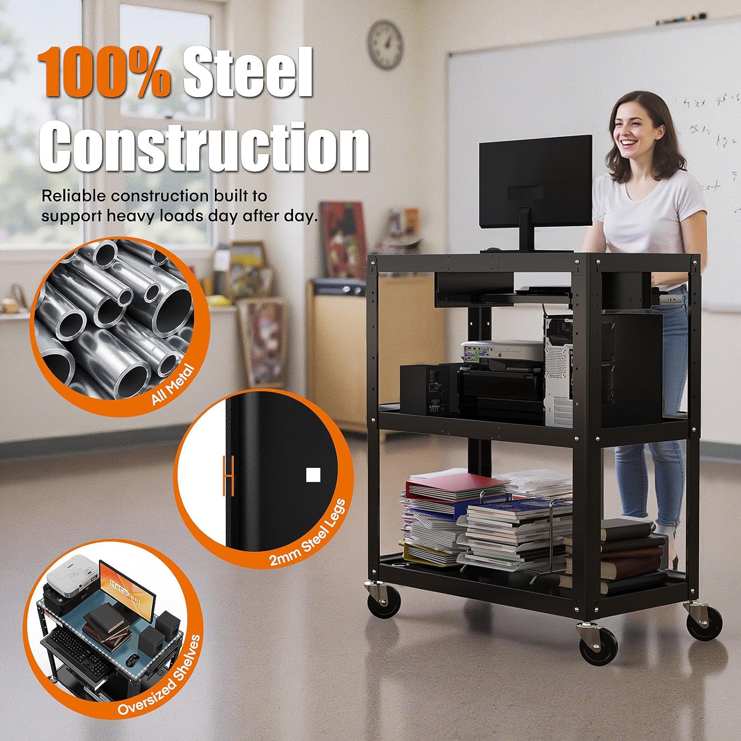 - Versatile for Multiple Environments:Perfect for use as a rolling computer cart, AV cart, workshop trolley, or mobile supply station—adaptable to offices, classrooms, labs, and garages.