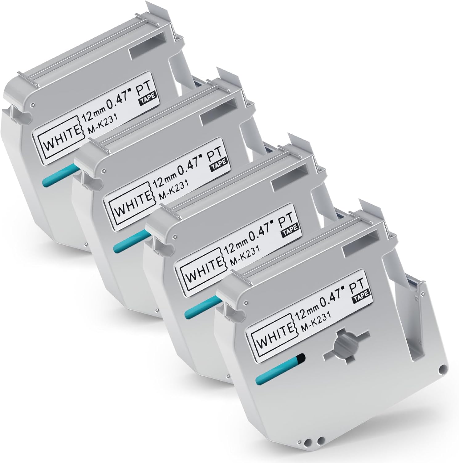 4 Pack M-K231 M Tape 12mm Compatible with M-K231s Brother Label Tape Black on White 0.47 Inch for P Touch PT-M95 PT95 PT65 PT-65 PT70 PT85 PT90 Label Maker Tape Refill