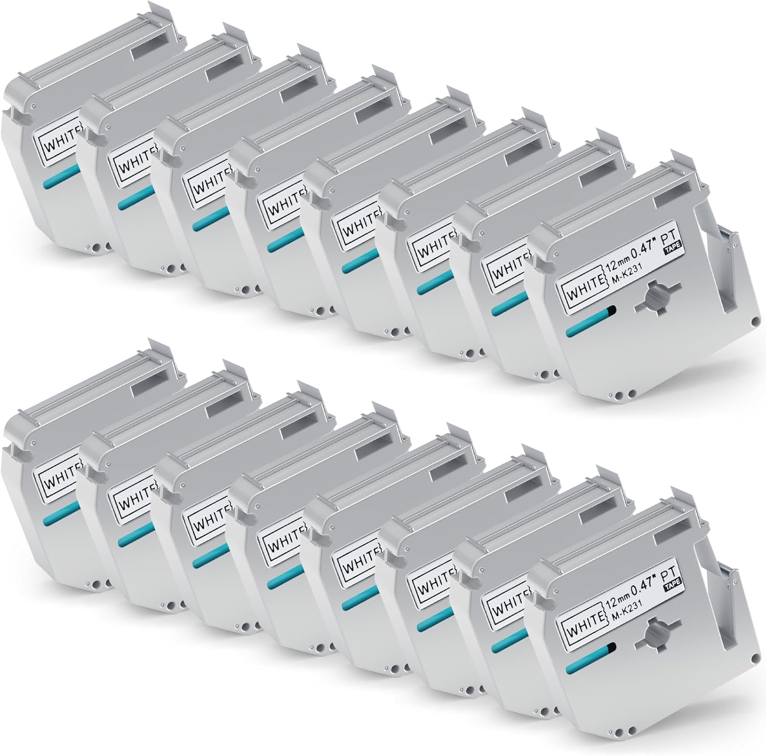 - Package: 16-pack compatible with brother m tape and brother label maker tape m-k231 m231 m-k231S mk231 m-231 white tape. Size: 1/2 inch x26.2 feet or 12mm x 8m each. Color: Black on white thermal tape non-laminated
