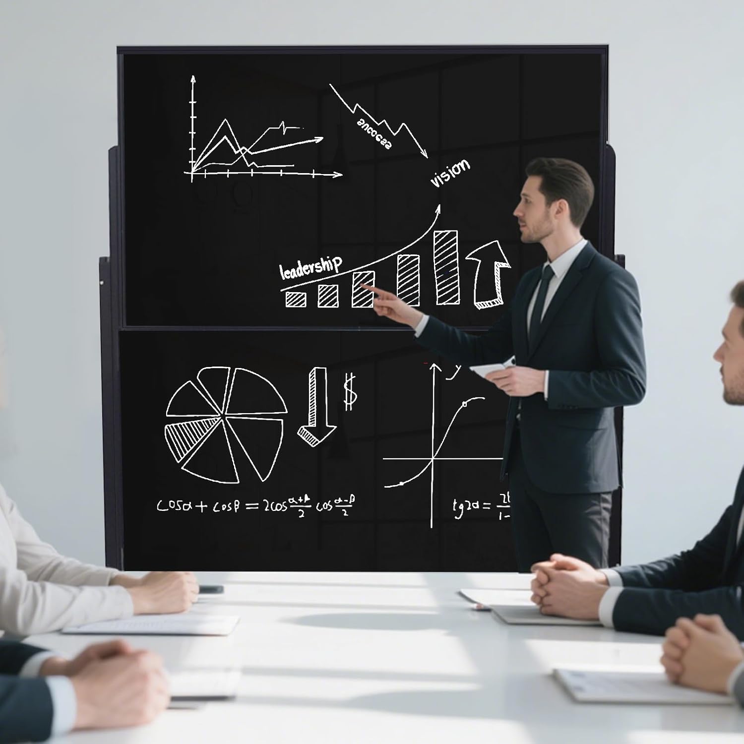 - Dual-Sided Magnetic Design with Lockable Stability:Maximize productivity with double-sided, reversible writing surfaces (4 total writing areas!) that offer ample space for brainstorming, teaching, or note-taking. Fully magnetic surfaces work with all magnetic accessories, while the 360° lockable swivel wheels keep the board steady during use—simply unlock to move, lock to write without wobbling.