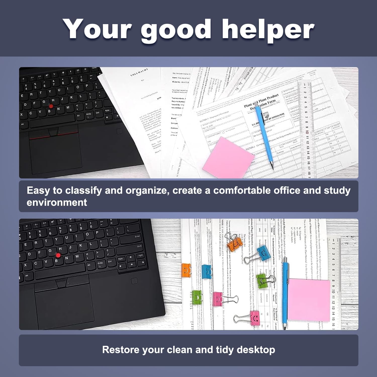- 【MULTIFUNCTION】These Colored Binder Clips Are Perfect For Home, Office And School. They Can Securely Hold And Bind Papers And Documents, Use Them To Save, Organize And Categorize Notes, Memos, To-Do Lists And Files. They Can Also Be Used To Seal Bags Of Chips, Candies And Cookies, And To Hang Photos And Postcards.